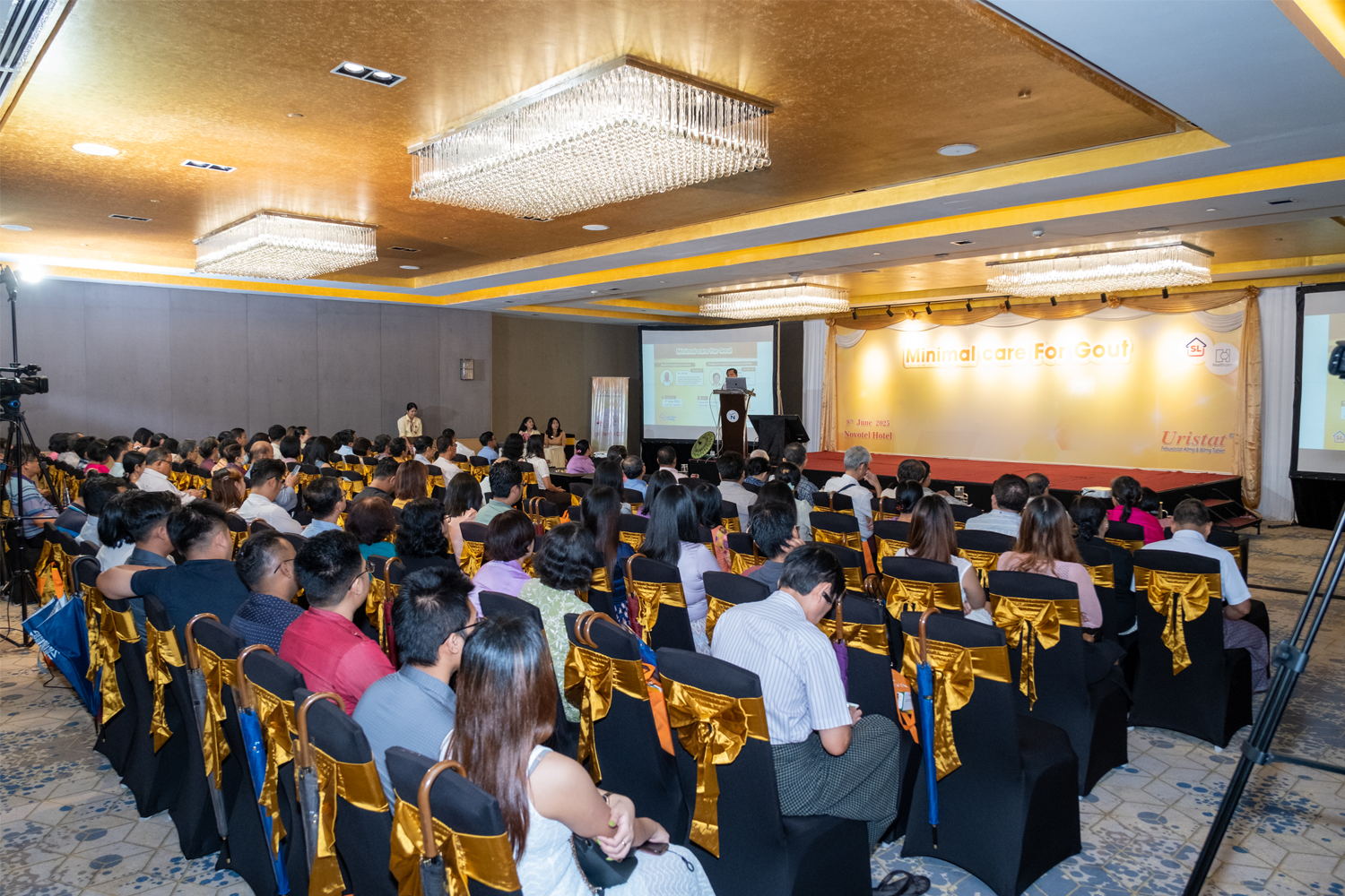 The “Minimal care For Gout” symposium showcases the gout disease and its treatment options. Honored speaker guests Professor U Chit Soe (Consultant Physician & Rheumatologist President, Myanmar Rheumatology Society) and Professor U Myint Thaung (Emeritus Professor, Myanmar Orthopedic Society) gave detailed medical perspective on Gout and surgical perspective on Gouty Arthritis respectively.